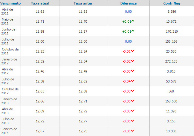 A seguir confira o fechamento das taxas dos principais contratos de DI futuro na BM&F: